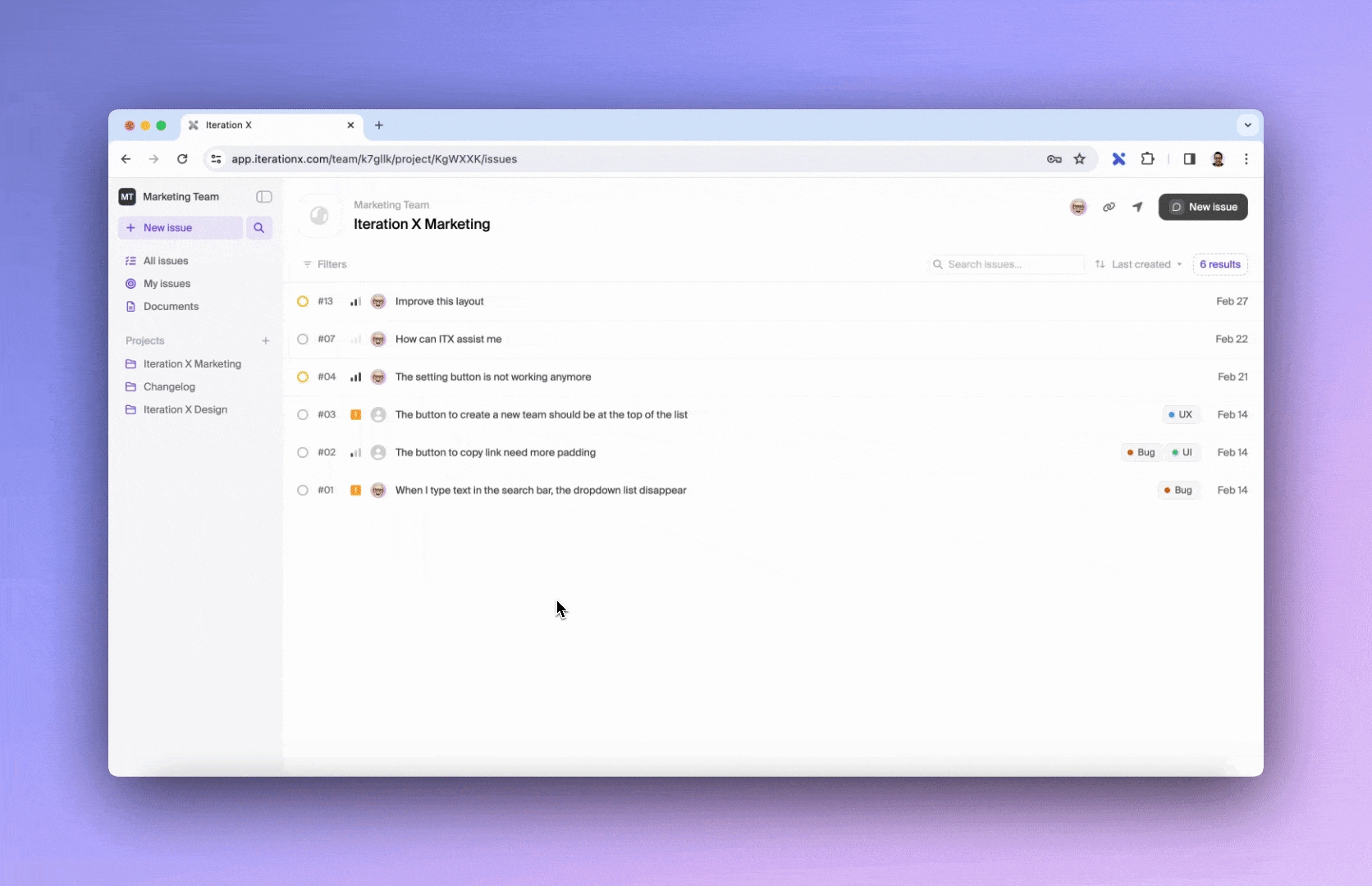 Click on the New Issue button, located at the top-left sidebar.