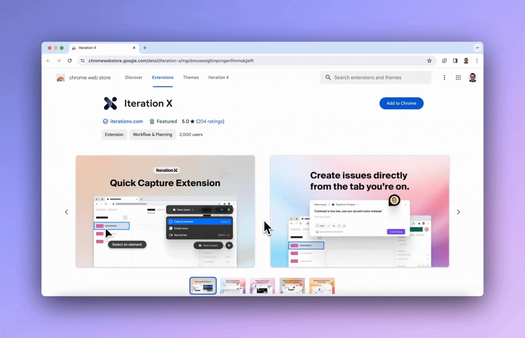 The Iteration X Quick Capture browser extension enables seamless issue capture by allowing you to capture screenshots and videos.