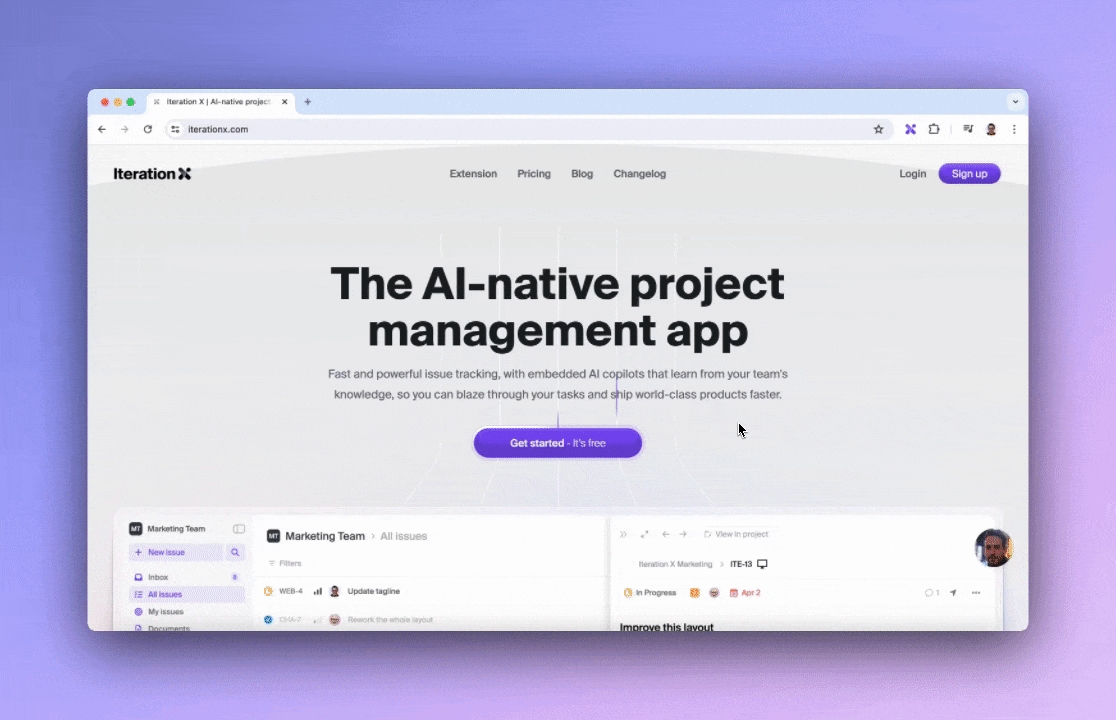Click on the Iteration X extension in the Chrome toolbar to open the Quick Capture menu.